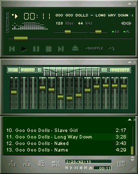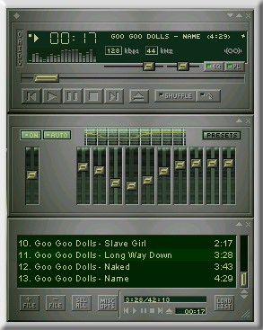Nice work, but I have couple of points. The little buttons on the Main window, in the titlebar don't seem to be quite right. I have trouble getting these right, too. Not exactly sure what the problem is tho. Maybe it's just my eyes!! Maybe the titlebar could a bit thicker, to accomodate them? And I think you could change the eq-pl buttons and the playlist buttons (the ones that pop-up when you click on them), rather than recolour the originals. If you change these, it will be a really good skin. Nice work tho.