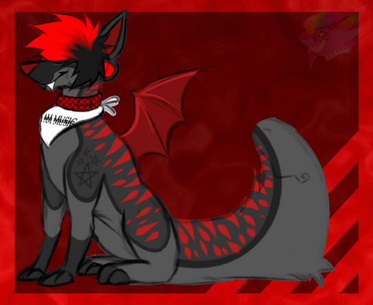 #digitalart #fox #canine #hybrid #originalcharacter #fursona #characterdesign #gothic #dog #fluffy #abyssal #demon #emo #emoboy #emodog #emolyrics #emomusic #fullbody #furry #grin #music #oc #paws #shackle #skull #tattoo #xoxo #emowolf #commissionsopen #emodoggo
