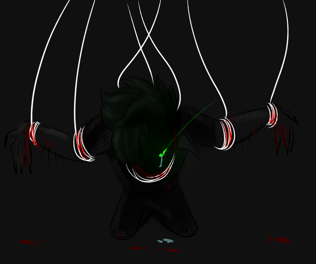 The anatomy is stunningly well done, and the composition is interesting: one body, several mechanical/ghostly hands (six of them, correct?), it's creepy but I can't get my eyes off it. I like the colours. Dirk has one nice face as well <3