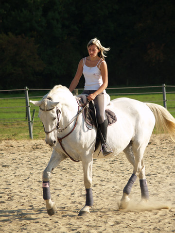 Trening nieco dawniejszy... Iliada moja śliczna no i ja. Tak to jest, jak się w ujeżdżeniówce skaczeCo tu mogę powiedzieć? Przeszkoda była niziutka, bo Kalipso ze mną jeszcze skakała, a Patrycja wtedy siedziała na niej drugi albo trzeci raz i miała pewne lęki. Ale jak widać Iliadzie to nie przeszkadzało, żeby walić susy jak sarna
