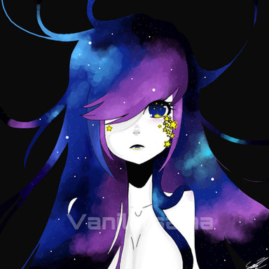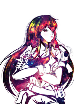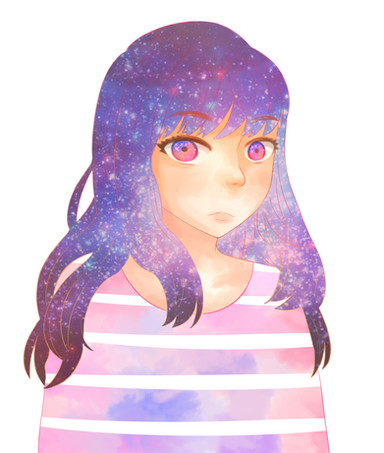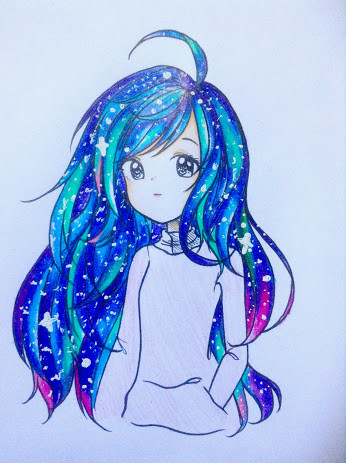 très joli dessin. J'aime beaucoup l'effet galaxy sur les cheveux.