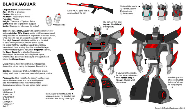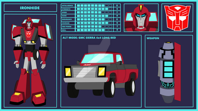 I had a lot of fun drawing this one and I really like how he turned out! I did everything possible to make his parts look like his movie namesake.He is a former Wrecker and later joined the team as weapons specializer (there's at least some Fixit in his role). His rude and violent personality makes a lot of trouble to his crew, and even worse to the Decepticons.