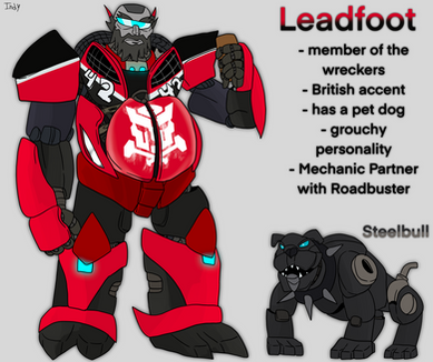 This turned out rather well, the look of the RID character designs show a strong hint of Animated as apposed to Prime's look. For Leadfoot you've done a good job in capturing the look of how he looks in the movies, everything right down to the gut is spot on.Β