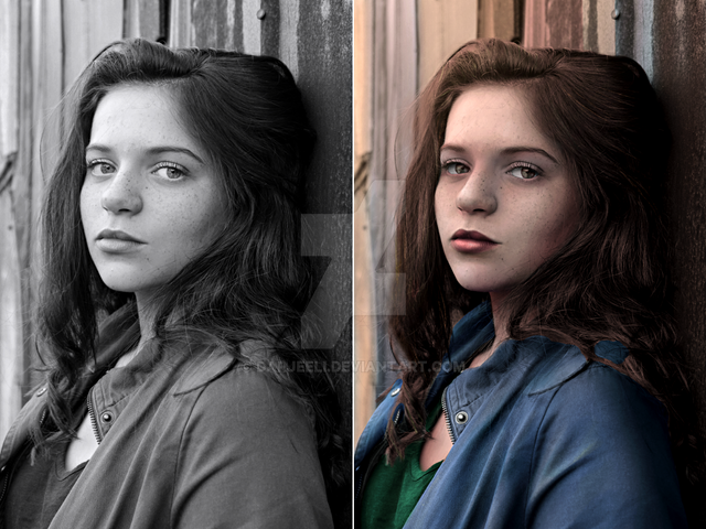 Painted black and white photo of Donna Reed.Original image: DoctorMacro.com - free to use license