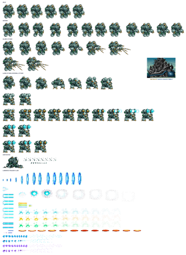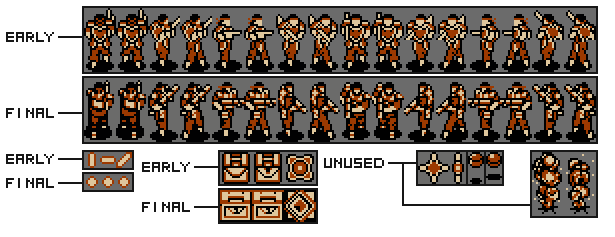 Sprite-wise: the ½ front-view was made using diverse enemies’ parts, every other sprite is scratch.