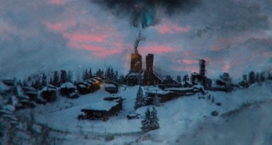 I really enjoy the colors you use in your pieces! In this one though, i'm not really a fan of the composition, the creature's face doesn't sit very well next to the building cause it looks a little out of place in my opinion, personally I would have placed it on the bottom of the image, still very good picture!