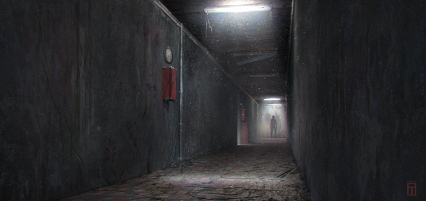 One of the things I love about this piece is the atmosphere. It's grim, spooky, creepy - and I can just imagine those lights beginning to flicker at any moment. The highlights are just enough to show us the scene while keeping it shrouded in shadow and mystery.