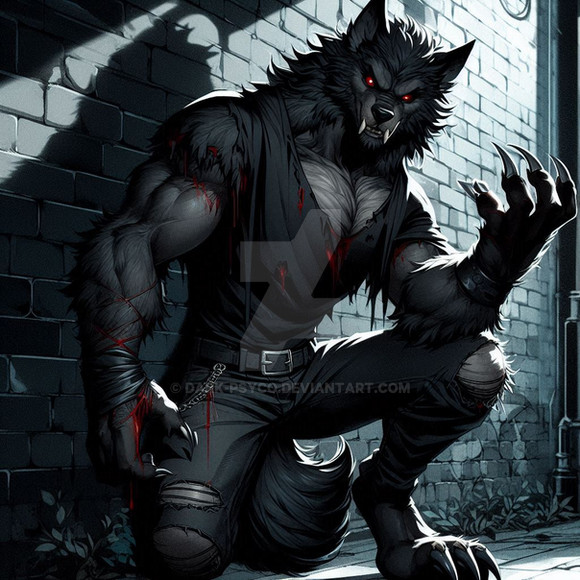 #horror #werewolf #beast #anthrowolf #digitalart #fanart #monster #wolves #animal #alleyway #lycanthrope #ai_generated_art