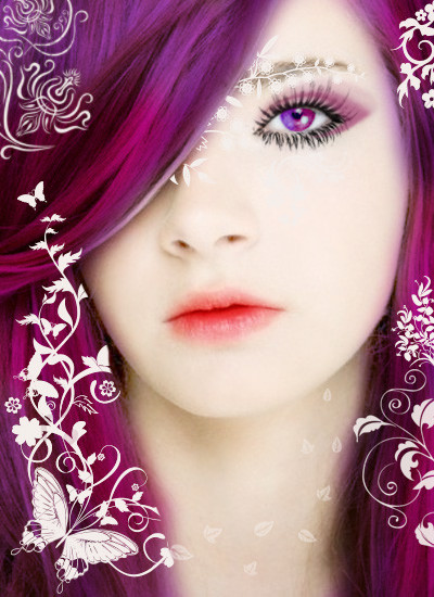 and what do ya know first comment to..you did an excellent job on this..the purpple lips are so cool...the background goes well with this pic..good job!
