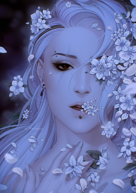 i LOVE this. the coloring is absolutely amazing. i like the grayish tone of her skin, but the best part is the matching blue of her fingernails , lipstick, and eyes. i think those blue tones really stand out, and make this picture great!