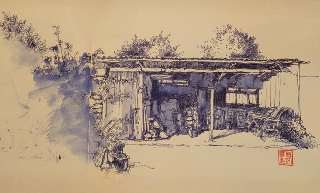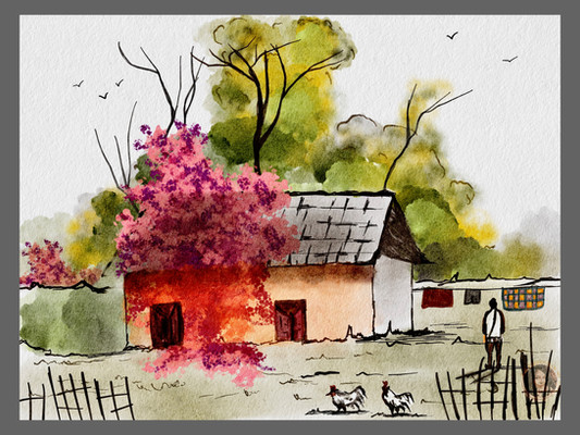 I like the simplicity of this, it could be any backyard hide away. Very nicley done watercolors.