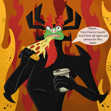 Aku: *in a drunken voice* uh...Loong ago.... in a.... uh... *hic* dishbbtant land.. *hic* I ,akuuu the shape-shifffbbting master of darkness. Un--leashed... an unspeakable...*hic* evuul... *buurp* bleh forget it... *collapses*