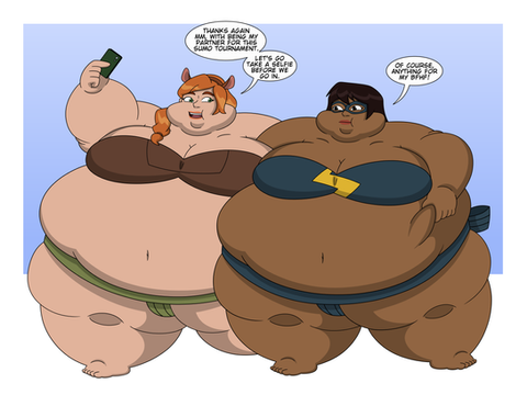 Here is a request of Kid Wonder Woman from the DCAU turning into a large sumo wrestler.The story goes as kid Wonder Woman finds a magical stone and when she picks it up she began to get fatter, here clothing began to change to that of a sumo wrestler and when the transformation was complete she became a Sumo Amazon Princess.