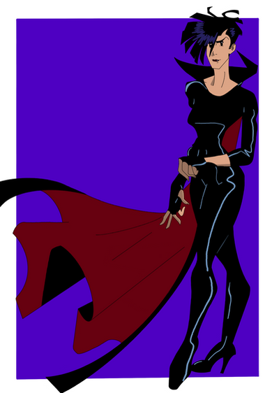 Not bad, but you messed up her abdomen, you're missing the pelvis, it looks like she has 2 ribcages, her left leg has a big bump sticking out of it, her neck is supposed to be adjacent to the bottom of the ear, her ear is tiny, her neck is supposed to be longer and straighter, her cheek is too thin and flat, her shoes are too pointy, the cape needs lighting and wrinkles, the fingers on her left hand are missing, the bicep on her right arm is too flat, her hat is supposed to look like Carmen Sandiego's not The Penguin's, her legs are too short