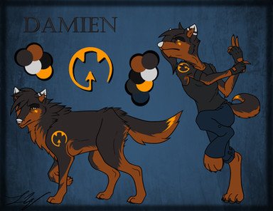 This was actually done last night but when I was going through the whole background and colour swatch process,I passed out half way through. Ah well.So, this is the new reference sheet of Desoto! I like how it turned out. Nice simple thing. Now, I will be honest with you, I will most likely be drawing the anthro more, mainly because his current story universe involves the anthro form and, well, I'm better at drawing human features than wolf features. Anyways, I'll be drawing Damien this weekend as well. Hopefully he'll be done by Sunday.
