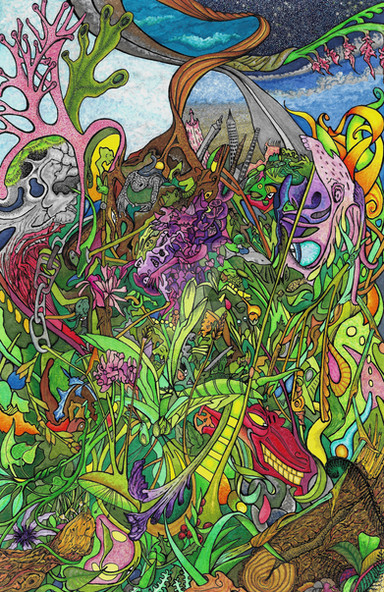 #cats #creatures #dragon #fineliner #foliage #fungi #imagination #insects #people #toadstools #trees #watercolor