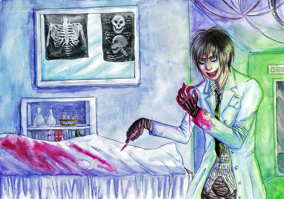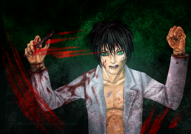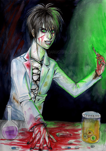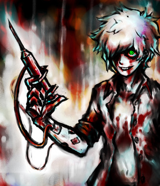 And yes, it's Loui. This shows a scene from the past of my story Insane Romance. Loui was held like a criminal in a mental hospital and treated like shit. When a scientist is threaten like a guinea pig... don't exceptc any mercy once he has freed himself.