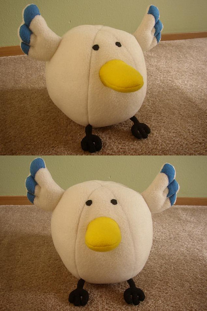 The rest is drawing a frill, a beak, and wings to put on em. Use teddy bear stuffing to stuff him. You can get it at Walmart, it's the one in the green bag. The blue bag one doesn't work well with this one.