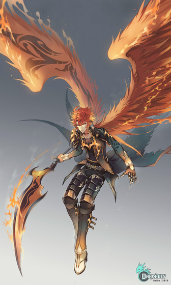 he has some gorgeous wings and i love how you draw flames here <3