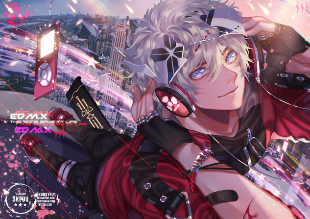 I seriously love his design with the sounds pattern. Everything is perfect. The composition in your drawings are always on point <3