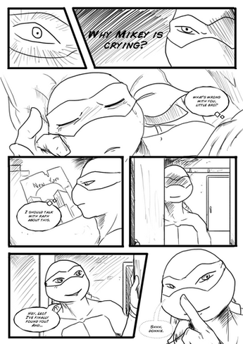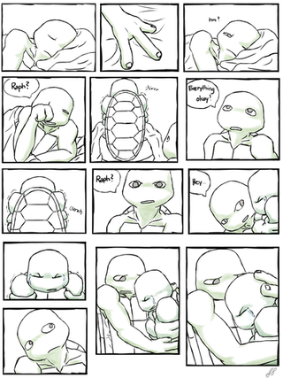 This was for a friend's birthday present. Based off of their fic (which I think they took down).The story idea was that the turtles were captured by the Kraang and experimented on. Donnie had it real bad too. The Kraang finally allowed Leo and Donnie to see each other and Donnie just threw himself into his brother's arms seeking what little comfort and safety he could.