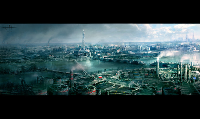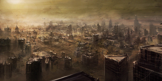 I like the ominous dark shrouding dust like storm looming over the city great concept!