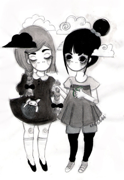 Very very cute! I love your creepy Japanese 'Two Sisters' style. Even if it is unintentional. The title reminds me of the song 'The Chemistry Between Us' by Suede. Do you know it or am i just reading into things again?