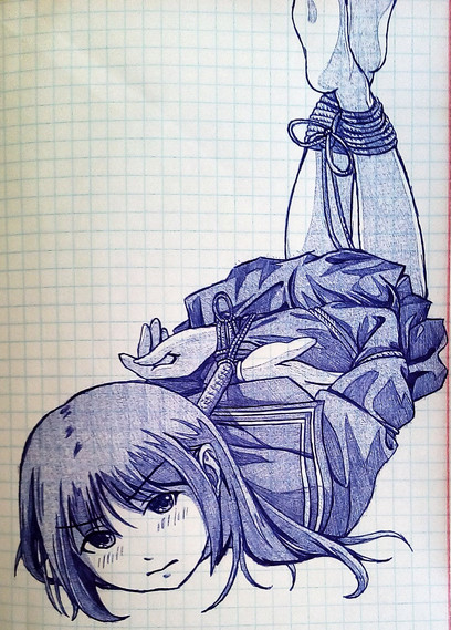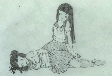 it makes me think the girl sitting up is class A and is teaching the girl in class B about bondge,japanese style!, or class A girl is punishing class B girl. oh my all the story lines!