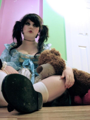 oh lol the cloths.. XD .. its just a pettycoat i bought for 2 dollars at a thrift.. i just scrunched it up so it wasnt see through and same with the shirt.. i bout it at a thrift.. and the lollipop is something i saved from when i was out.. so i could take a picture with it