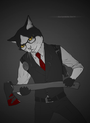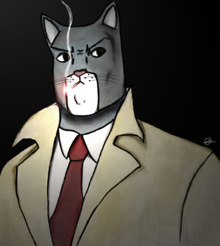 Wow, he is so cool I love the way he's drawn, the little details, the angle, the darkness of this piece,...