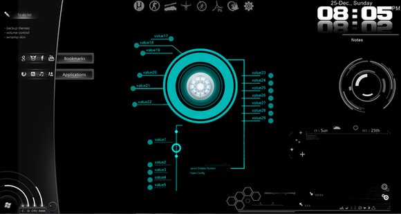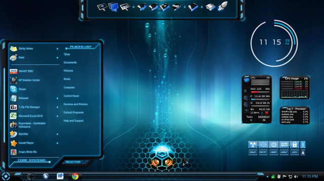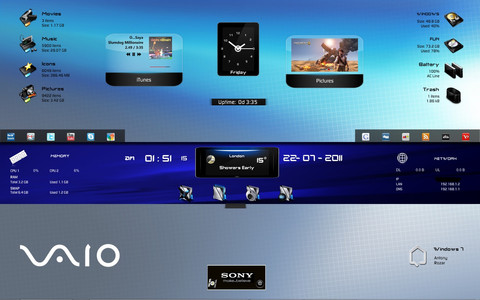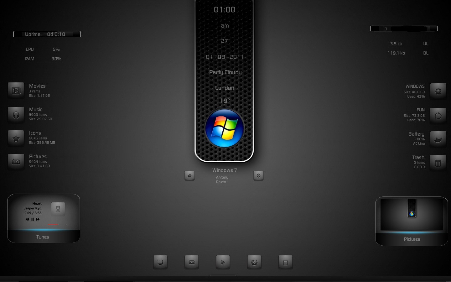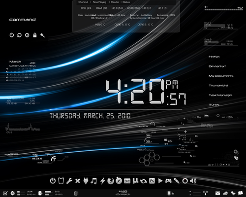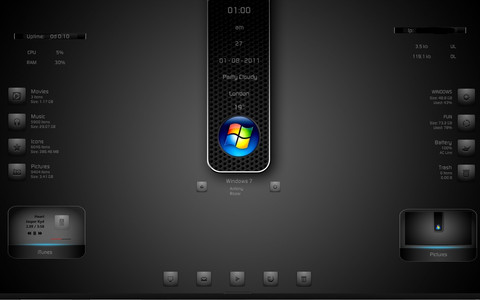 My Computer, Documents, Browser, Music, System Info, Memory Info, Disk C & D, Upload & Download, Time and Date....