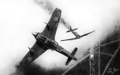 At a glance, it seems like something out of "All Quiet on the Western Front," but the purple sky and flowing stream give that notion a quick boot. I dunno, perhaps greyscale the sky and add more contrast while doing something to the stream... perhaps a red tint to symbolize blood or something.