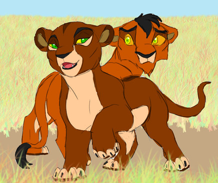 Scar's first litter by Sarafina, Hisani and Mheetu!Hisani becomes the mother of Kovu and Vitani, and Mheetu is lost before he reaches adulthood.