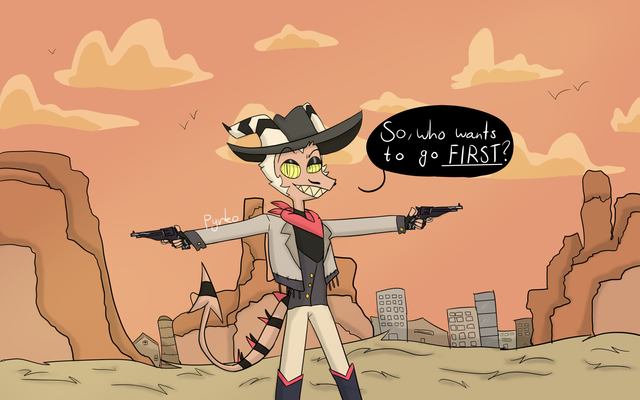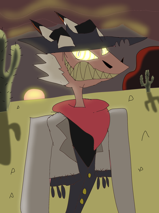 I tried to draw him to look like him more. The worst thing is that I drew the other kind of revolver not what Striker could have,