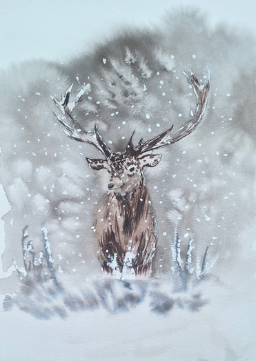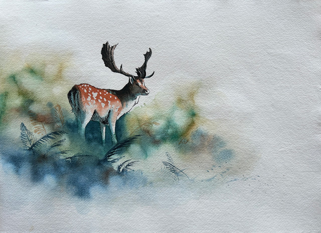 #aquarelle #deer #evening #silhouette #sunrise #sunset #traditionalart #watercolor #watercolorpainting