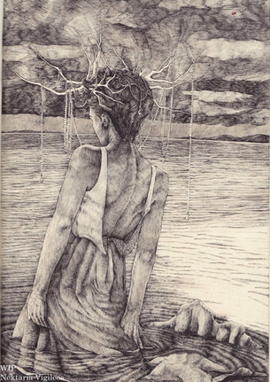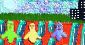 Just a random thing that turned out looking quite nice, just on newspaper.The picture is of a topless Denise Van Outen, but I love the way her jeans give the effect of boots on the stenciled girls, and her hair becomes their hair.