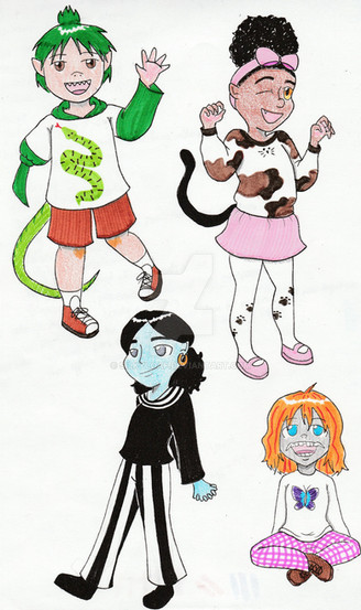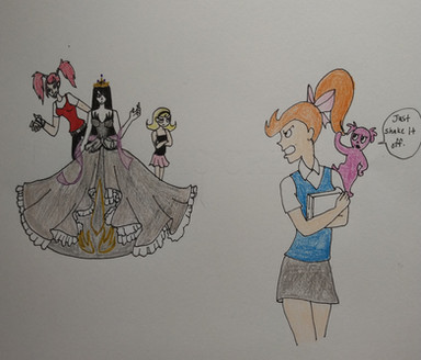 1. Cherry, the main protagonist, drawn how she is on the cover of issue 1. Cherry is surprisingly human for someone who was born in Hell. Although, in issue 2, a barbed devil tail popped out when Briggy Bundy picked her up, resulting in her emitting an ear-splitting scream that was heard throughout Hell.
