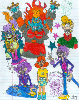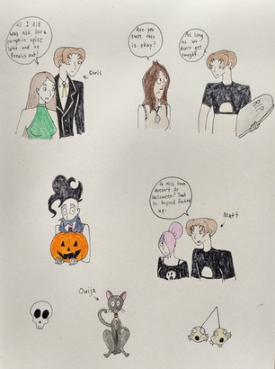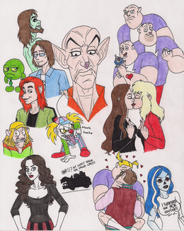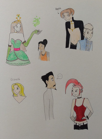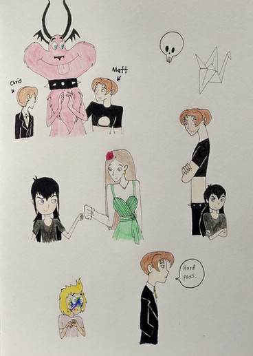 7. Like I always do, I throw in my characters to interact with the canon media characters. Cherry hugging Matt, that's the whole reason I made this sketchdump. Matt's trying with all his damnedest not to hit her. Chris on the other hand find it hilarious.