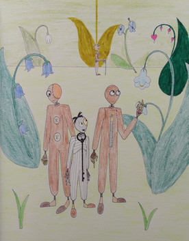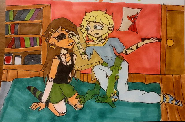 Mandy, now older, I'd say at least fourteen. She doesn't react beyond the same neutral face. I drew Mindy there to remind you that I've drawn her in the past. But Mindy is not part of my story. Mindy will never appear in the story I might or might not write. (If I ever figure out this layout).