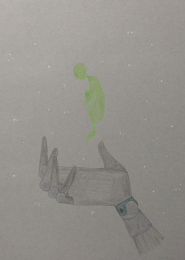 In the background is Grim watching in horror. He knows it's going to happen, but he can't sometimes help that all he sees is the Queen hiding behind Athena.