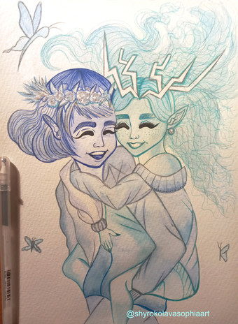 Pictured above is Athena, older, about sixteen. She hasn't been coronated yet, but is exhibiting strange powers. She won't be at full power until she's twenty-one. You know that Athena is the reincarnation of the Queen of the Underworld. I like to think that the Queen is giving Athena a preview of what it's going to be when she does get crowned and is at full power.