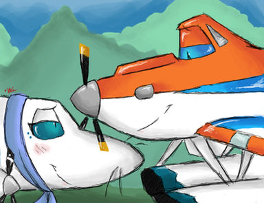 well this took me a while but, finally got it finished. Chile found herself in the middle of a forest fire and Dusty being the noble plane he is rushed in to save her but in the process getting burned bit from falling branches, and now they are a bit trapped but hopefully Crophopper will find a way out.Btw I still do Pair these two.