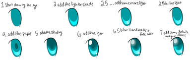 Add a dark shade of your chosen colour in the shape of a oval in the middle of the eye, then add some shading in the same darker colour to the top of the eye like shown.