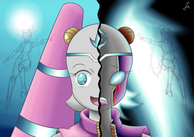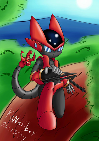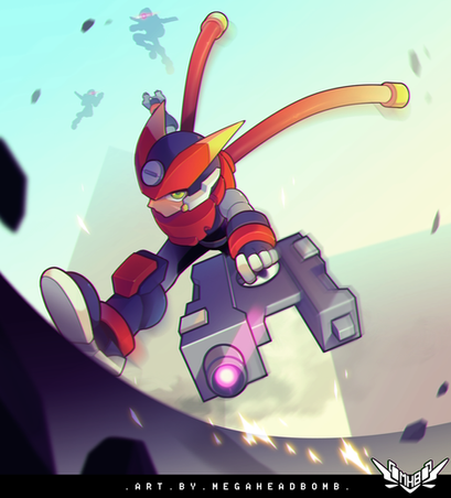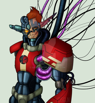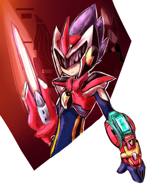Al principio me fui por lo básico con este personaje, el planteamiento inicial era que fuera un personaje basado en velocidad con armas de cuerpo a cuerpo de filo y con la personalidad basada en la furia, pero ese concepto siempre me hiso sentir de alguna manera incompleto. RED tenia que ser algo más. Al ser de los primeros personajes robots que comencé a diseñar preferí basarlo en 2 personajes iconicos de mi preferencia que serian Megaman Zero y Cell de DBZ.