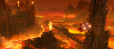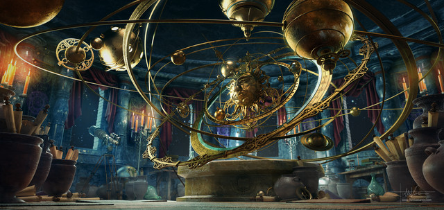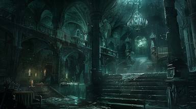 I lite a lot, too, the environment; I mean, stairs, carpet, candlesticks make it look like an inner environment, but the light and the structure on the top of the stairs suggest an outer scene and this gives (at least to me) an unsettling feeling.
