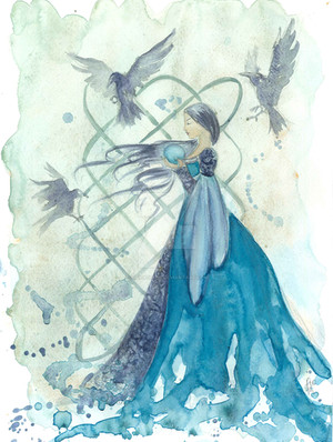 Amazing colours, and I love how the woman looks... there are three ravens in the title, and two in the picture, so I'm wondering if she is a third one?