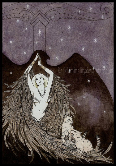 Thanks I'm happy you like it. Yes I did intend that the woman should also be interpreted as a raven, though whether it is just her name, or she is a shape-shifter is ambiguous...