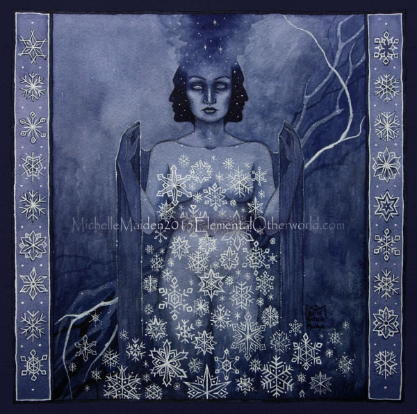 Very beautiful work. I love the way you used the watercolour, her expressive face and posture and the calm and yet strong, mystical athmosphere... Stunning!