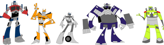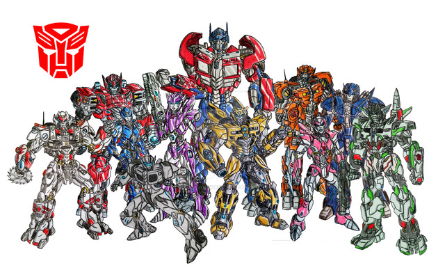 Here's (from left to right) Bumblebee, Ironhide, Optimus Prime, Jazz, and Ratchet from the movie. Except for the Autobot symbol at the bottom, I drew this all myself using a paint program on my computer. My one regret about this picture is that I drew Ironhide freakishly small.If you like this picure, check out my Decepticon one also.[link]