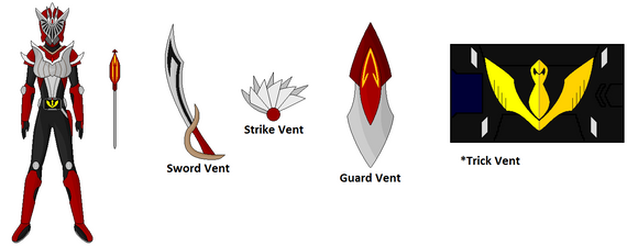 Hydra- Leader of Bad Guys. Mechanical Monster. For his Final Vent he rises into the air, the three heads of his Advent Beast emit powerful bursts of acid, and this propels him forward to perform the Rider Kick at top speed.
